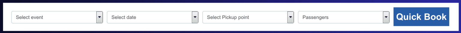 You must book seats for the correct event, as bus tickets are not transferable and no refunds will be issued.